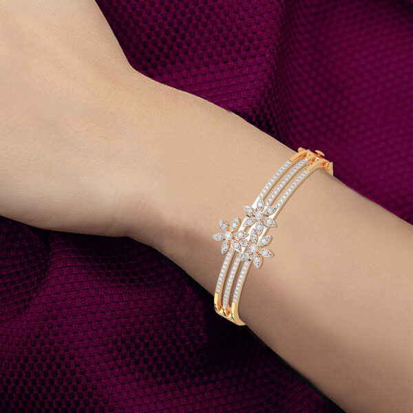 Add a traditional piece to your modern style with these beautiful diamond bangles with floral motifs that blend heritage with contemporary chic.