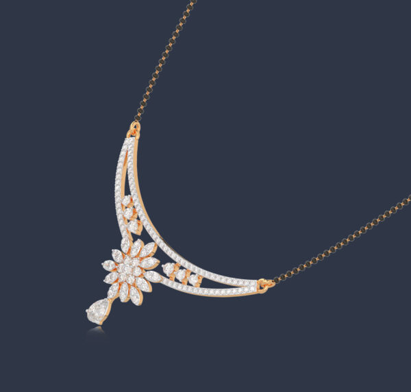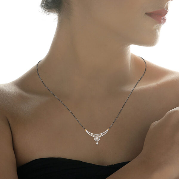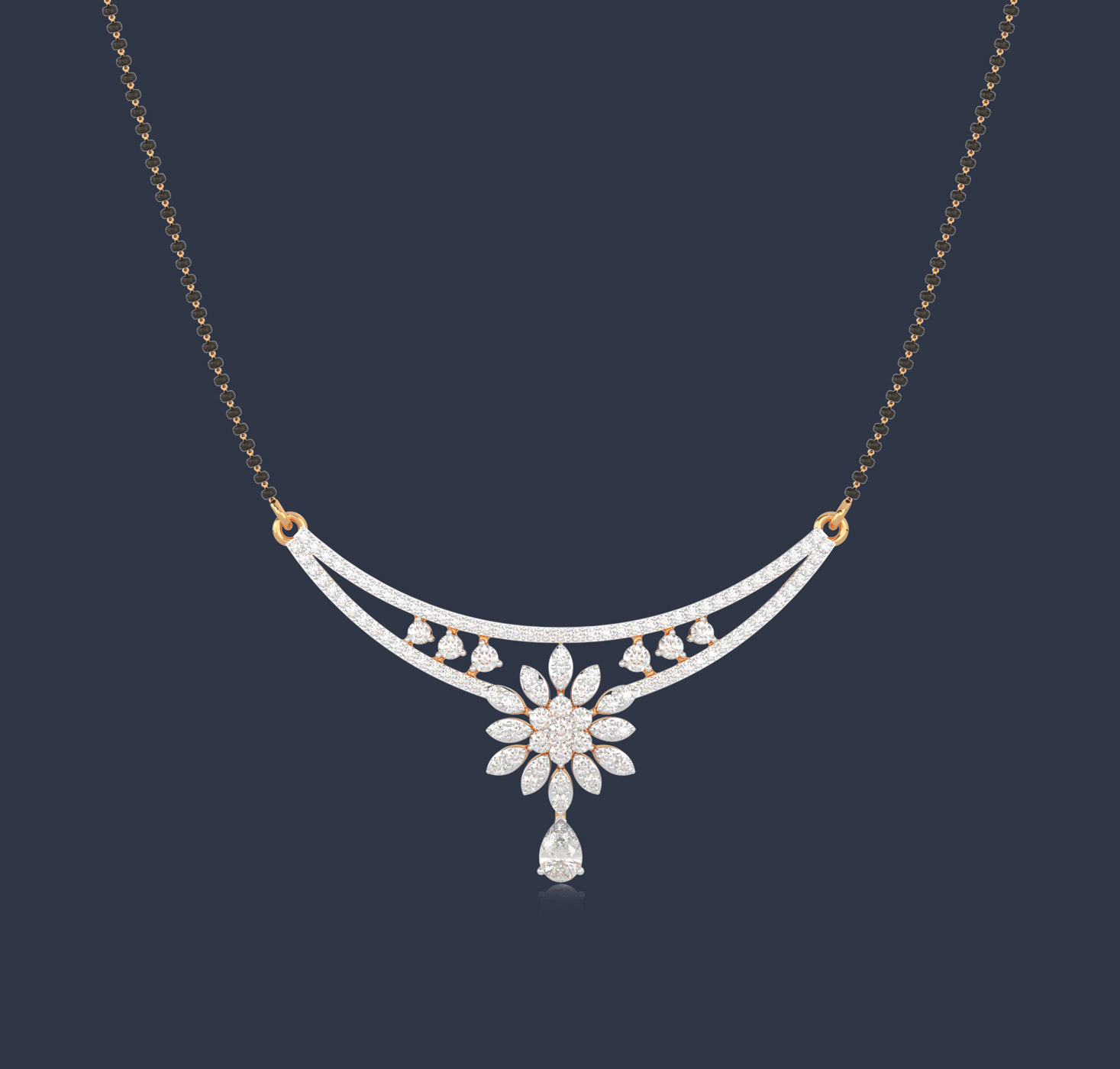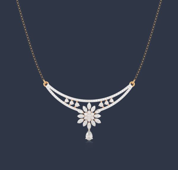Seal your sacred vow with this stunning diamond mangalsutra pendant, featuring delicate and sparkling leaves .