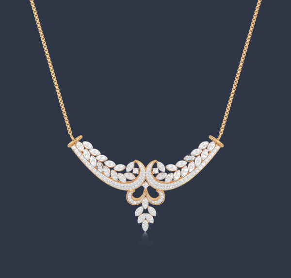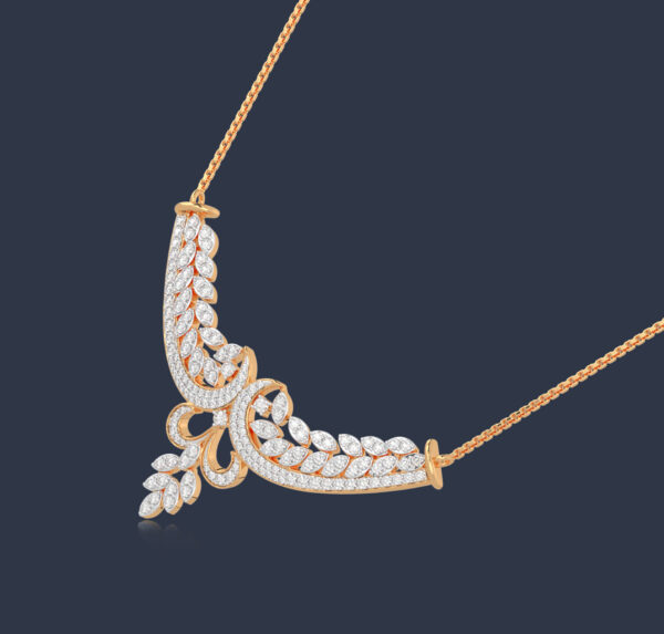 Seal your sacred vow with this stunning diamond mangalsutra pendant, featuring delicate and sparkling leaves .