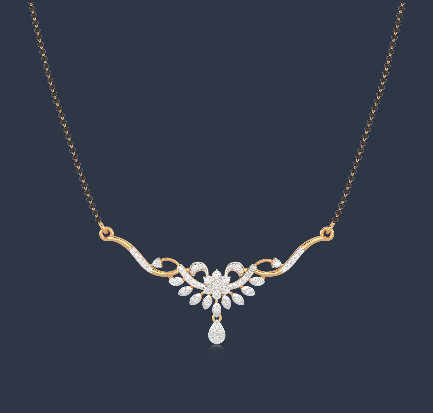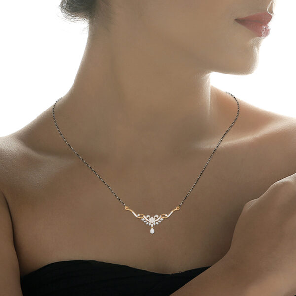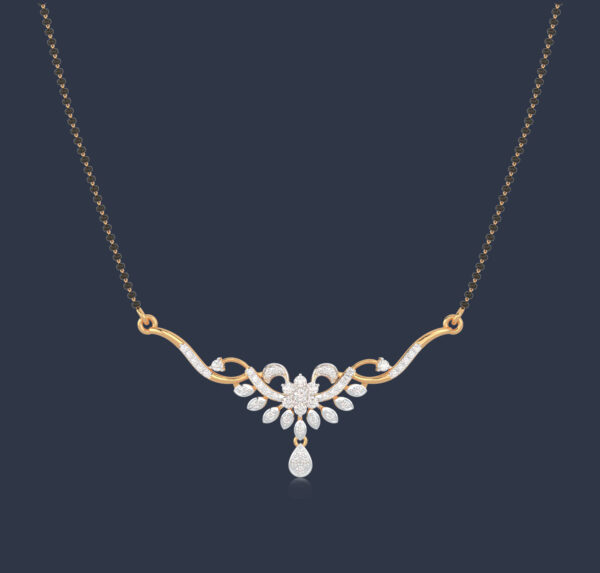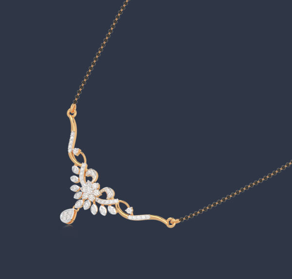 Seal your sacred vow with this stunning diamond mangalsutra pendant, featuring delicate and sparkling leaves .