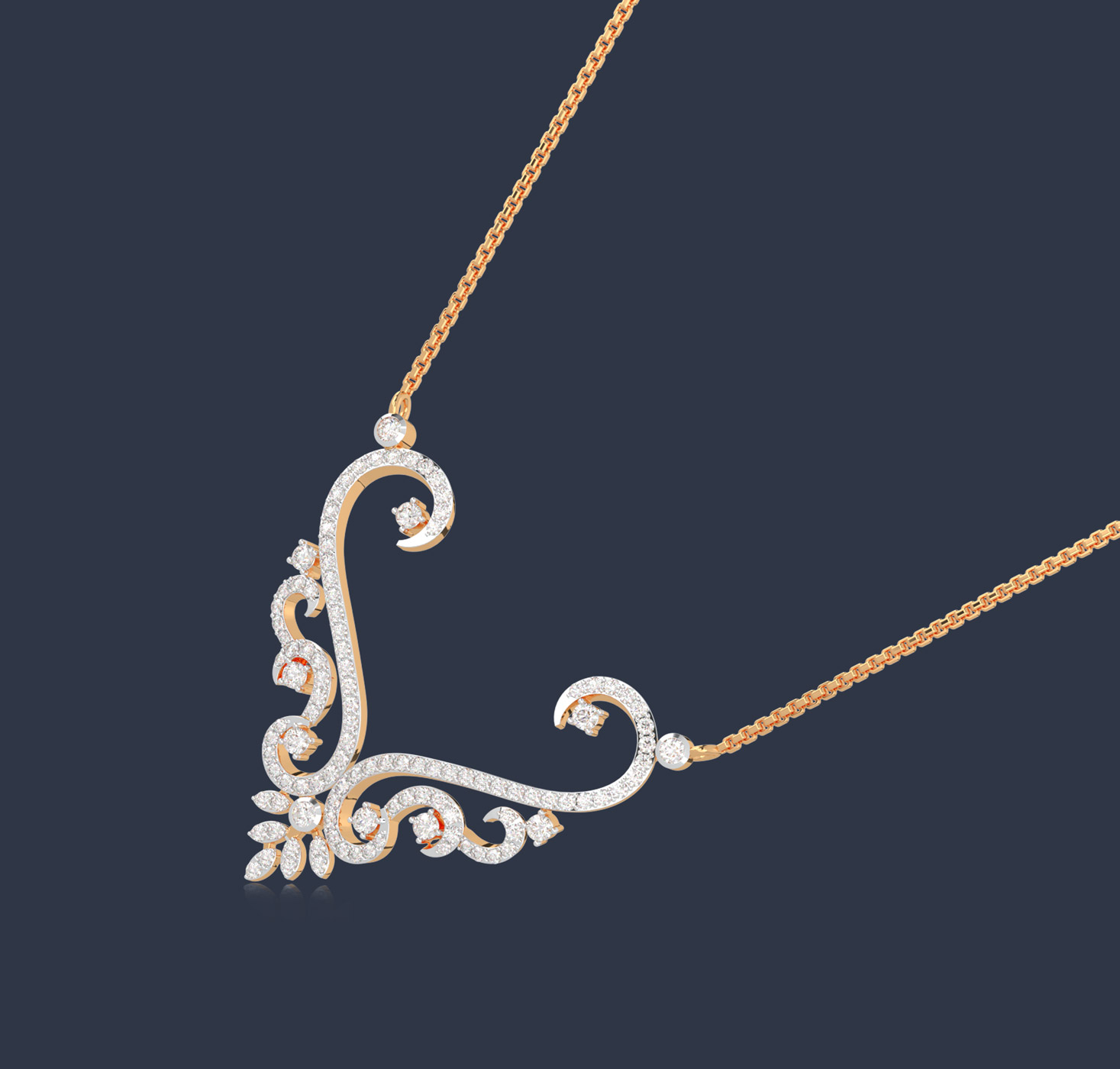 Seal your sacred vow with this stunning diamond mangalsutra pendant, featuring delicate and sparkling leaves .