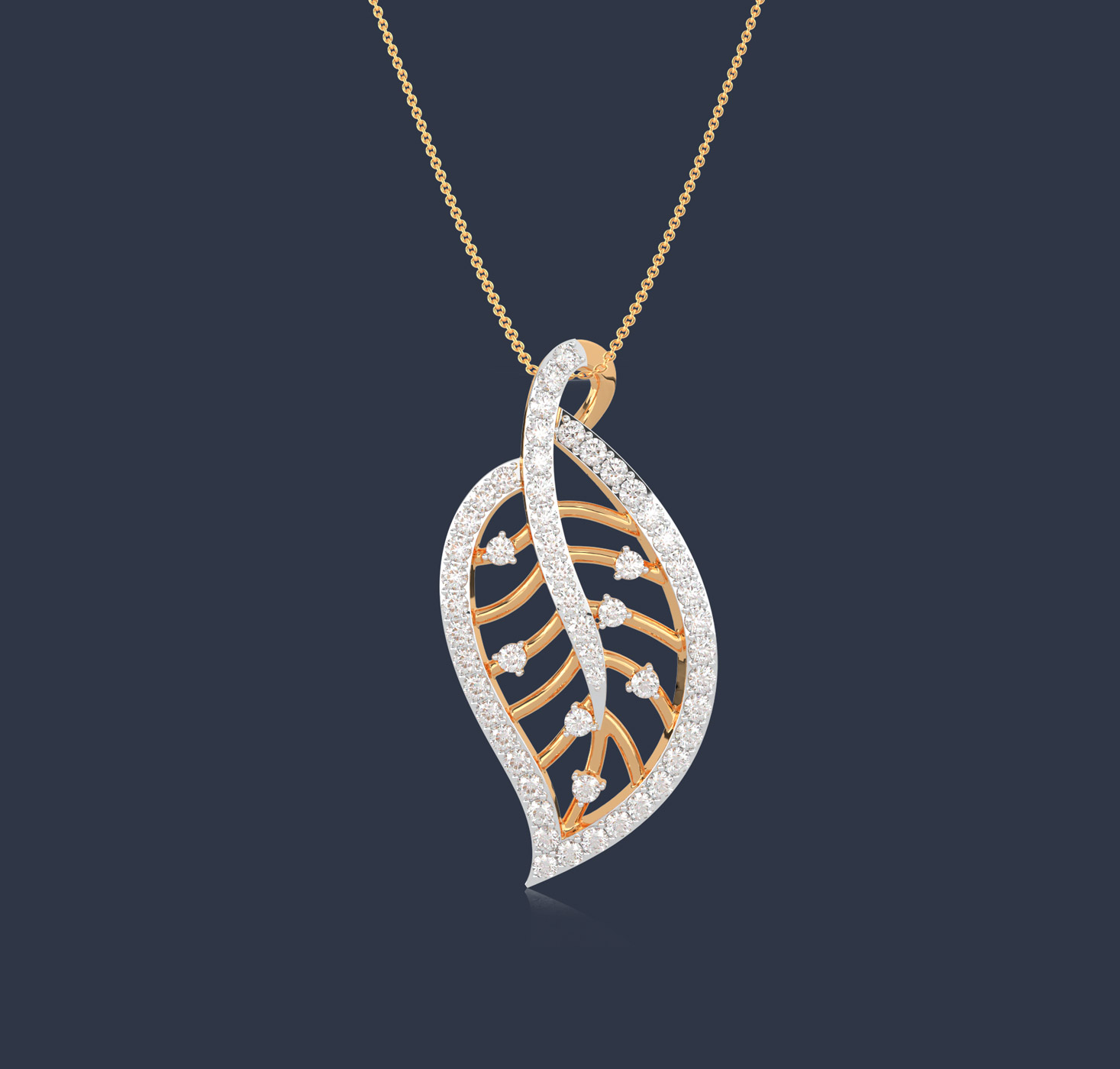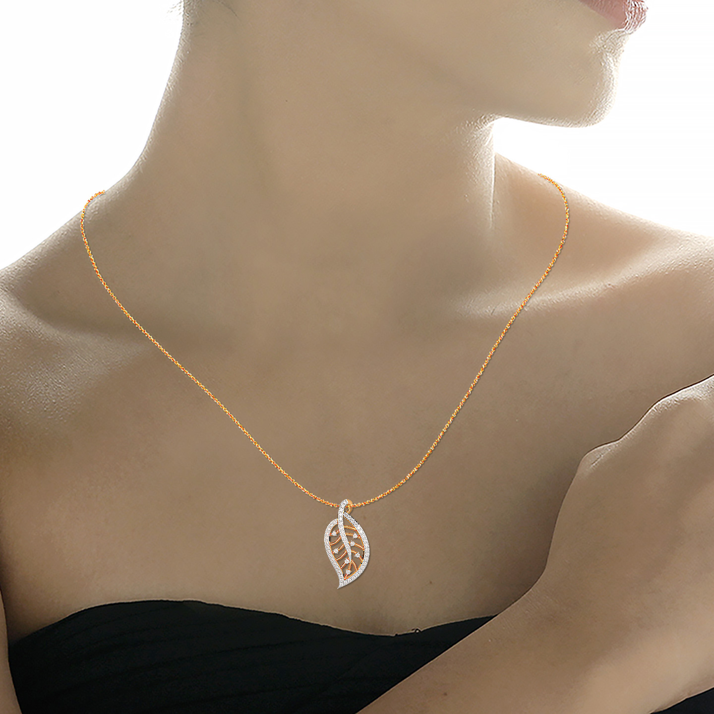 Witness the artistry of nature, reimagined in this stunning diamond leaf pendant, featuring a kaleidoscope of colours.