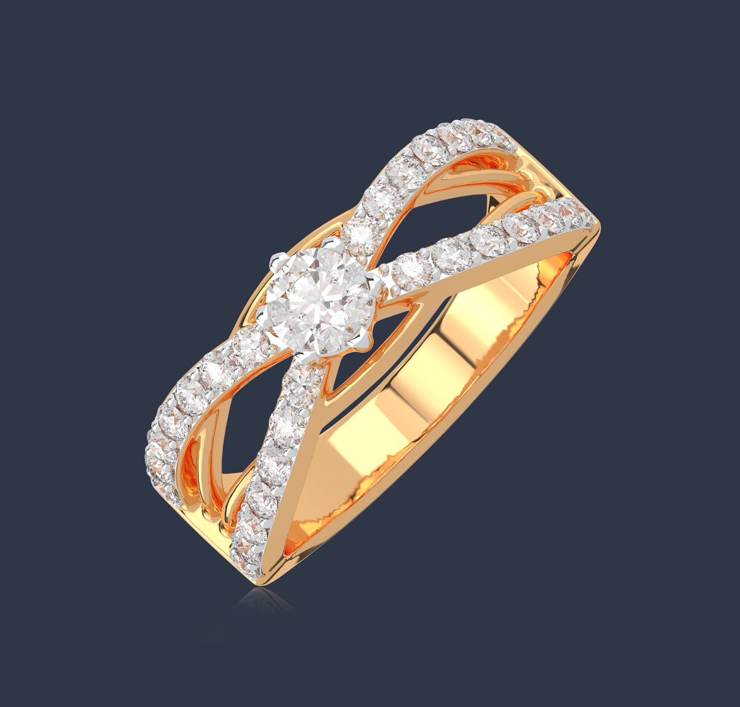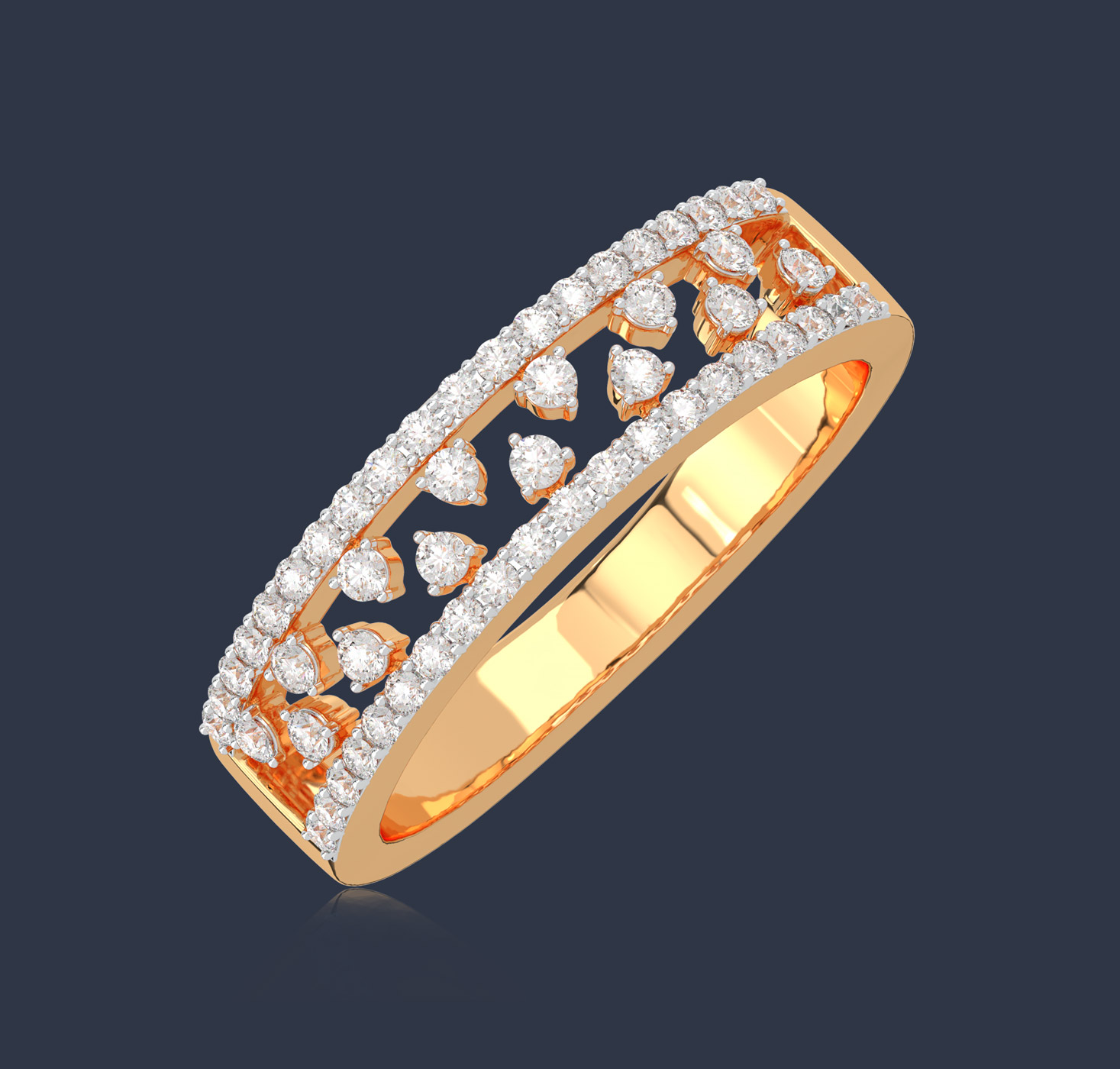 This advanced CAD design represents a meticulously engineered diamond ring, combining modern technology with timeless elegance.
